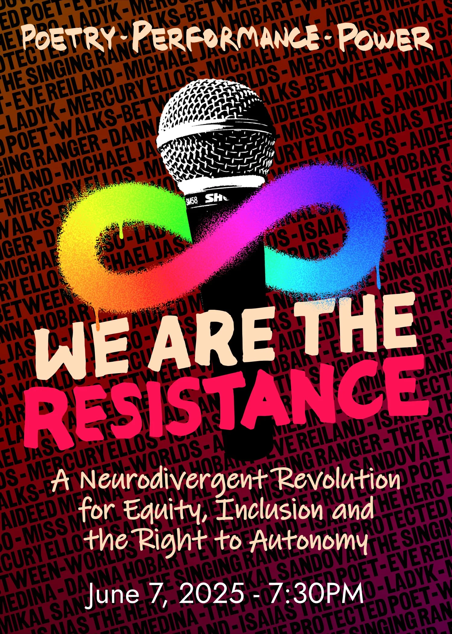 Join us for a night of unapologetic truth-telling, where neurodivergent voices rise, stigma falls, and community takes center stage.